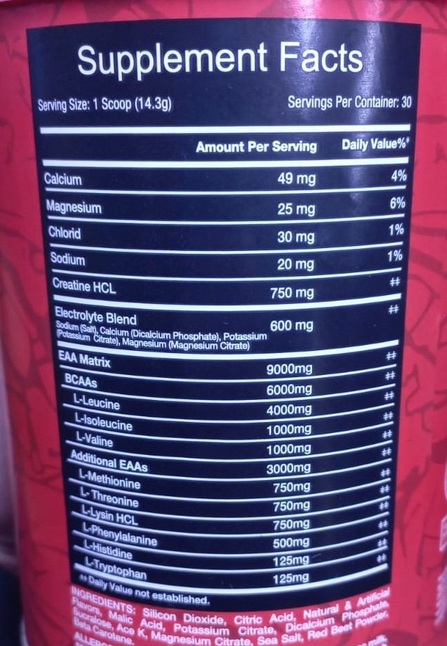توفّر **9000 ملغ لكل جرعة، وتحتوي على الأحماض الأمينية الأساسية التسعة الضرورية لبناء العضلات. تساهم في تحفيز تخليق البروتين العضلي – دعم نمو العضلات والحفاظ عليها- تسريع التعافي بعد التمارين- تقليل الهدم العضلي أثناء فترات التدريب المكثّف