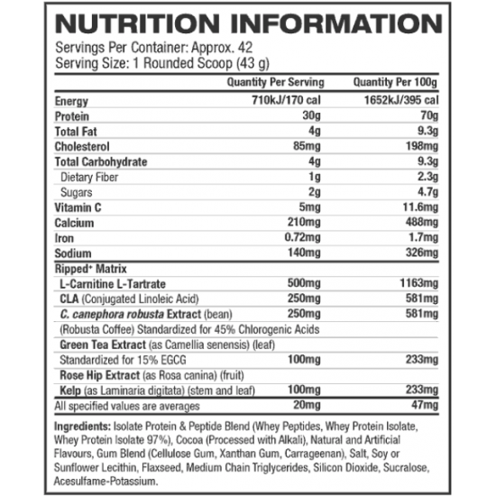 مسحوق بروتين إنقاص الوزن => MuscleTech Nitro-Tech Ripped هو الصيغة النهائية للبروتين وخسارة الوزن التي تجمع بين بروتين مصل اللبن المعزول والببتيدات عالية الجودة و C. canephora robusta.