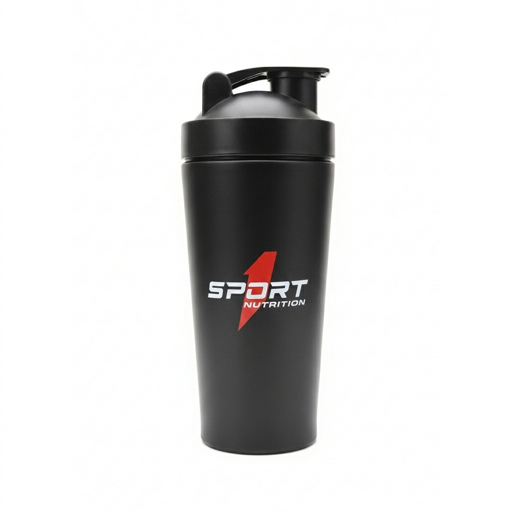 زجاجة شيكر معدنية بسعة 700 مل، مصممة لخلط مخفوقات البروتين والمكملات الغذائية.