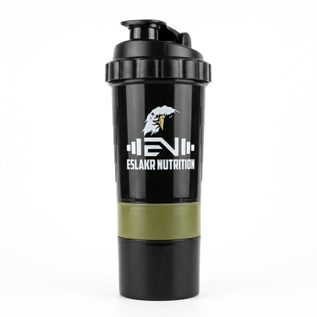 يحتوي على قسم مدمج لتخزين البودرة، الكرياتين أو الكبسولات، مما يجعله عمليًا للحمل في أي مكان.