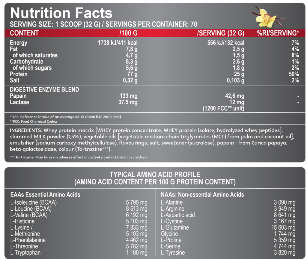 Cette délicieuse matrice de protéines de lactosérum fournit 24 g/25 g de protéines de haute qualité et seulement 2,6 g de glucides par portion.